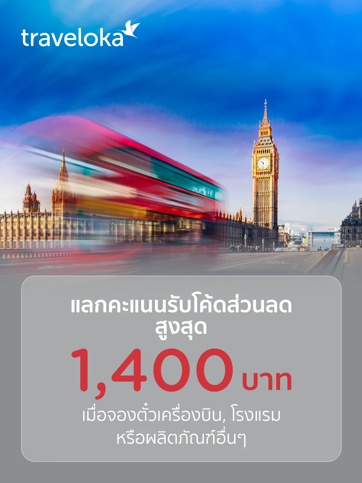 โปรโมชั่นแลกคะแนนรับส่วนลดสูงสุด 1,400 บาท ที่ Traveloka กับบัตรเครดิต KTC